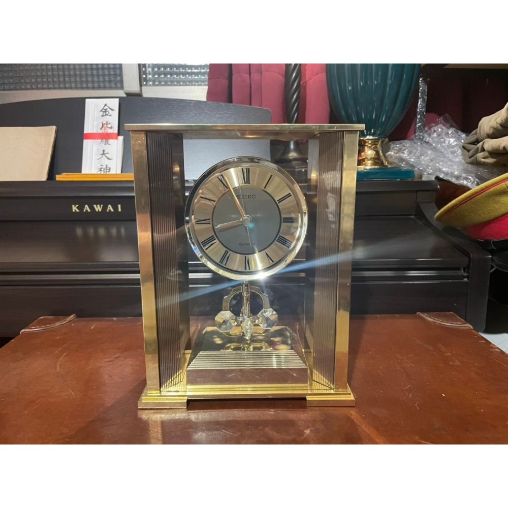 日本內銷款SEIKO (精工) 全金屬框架古典座鐘 石英機芯、功能正常、劍形指針+劍形時標 可正常運作 座鐘全金屬框架,因製作成本高,現今產品已少有全金屬座鐘。