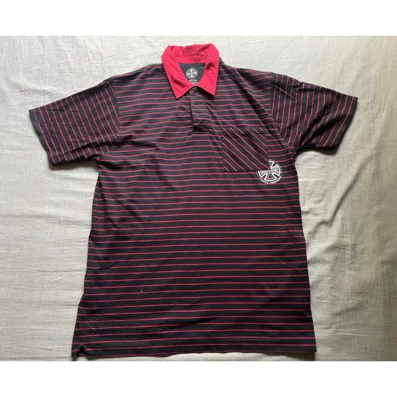 【A4】二手古著Vintage滑板大牌Independent條紋 Polo衫
