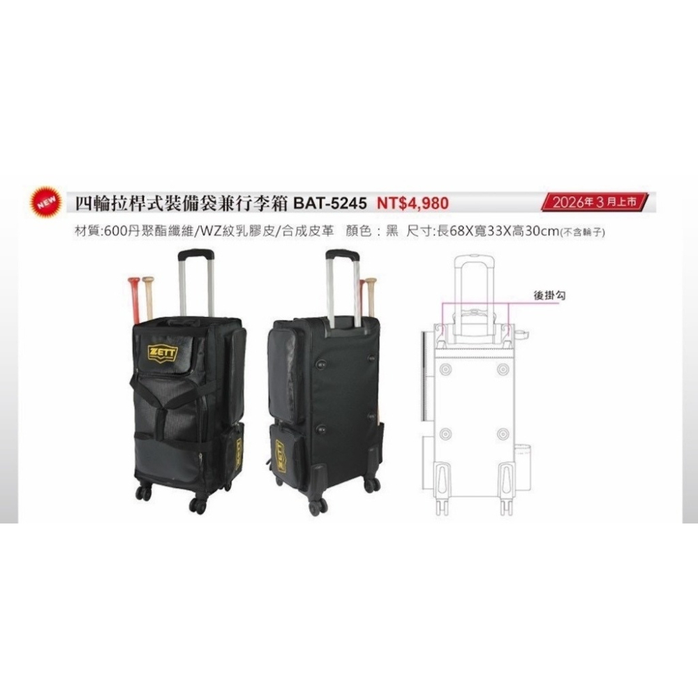 品名:ZETT 棒球 壘球 棒壘球 四輪拉桿式裝備袋兼