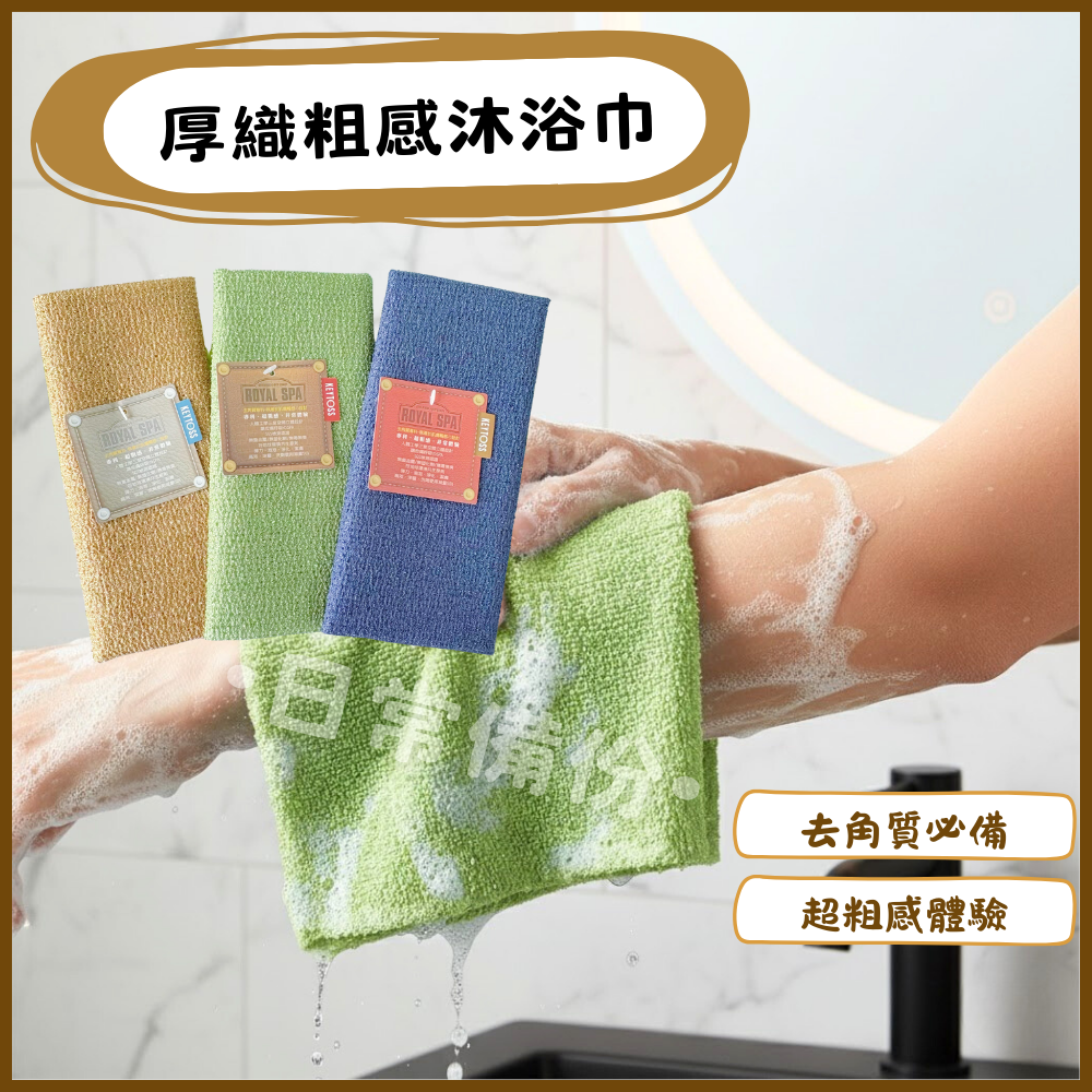 🍀厚織粗感沐浴巾清潔力佳,搭配沐浴乳起泡豐富,使用方便不易滑落,快速清洗背部與全身。