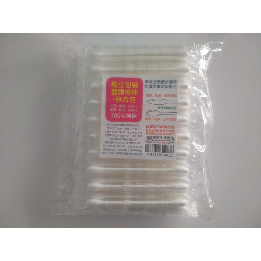 . 品名:獨立包裝 雙頭棉棒 綜合包 . 尺寸:單支長7.5cm . 材質:純棉、紙 .入數:70支 尖頭+圓頭35支 圓頭+圓頭35支 .產地:中國