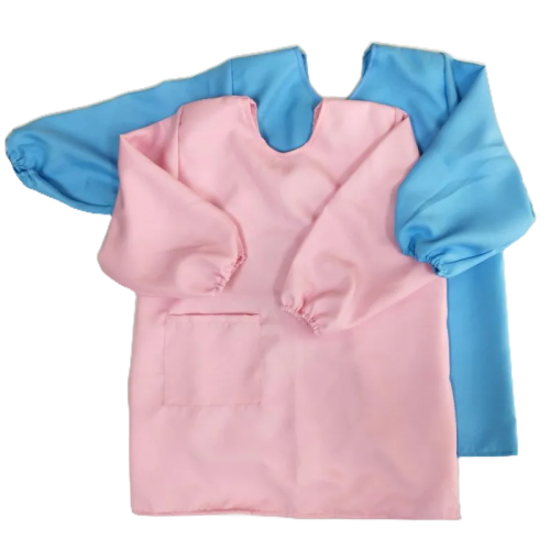 內裡是防水布(防水布是輕防水,長時間潮溼會滲透), 袖子和背部都是單層布料(不防水)。 尺寸: 大童: 本體- 長約71公分*寬58公分 (不含袖長) 袖長- 約46公分 肩長- 約13公分 口袋 一個,在單側 (尺寸為手工側量±1-3公分) 適用身高:120-150公分 小童: 本體- 長約58公分*寬45公分 (不含袖長) 袖長- 36公分 肩長- 約10公分 口袋 一個,在單側 (尺寸為手工側量±1-3公分) 適用身高:100-120公分 因現在的小朋友營養發育很好, 請不要以年齡、年級判斷要穿大穿小 , 請您務必以商品尺寸規格 , 核對您家小朋友的尺寸比較不會買錯。 材質:聚酯纖維 產地:台灣 顏色: 粉色,水藍 包裝: 工廠交貨五件包一袋(說環保),所以商品為裸裝,賣家出貨會以您買幾件就會另外幫您包, 買二件就二件包一袋,買三件就三件包一袋,不是一件一件包哦,謝謝 #畫畫衣 #水彩衣 #兒童工作服 #圍裙 #長袖圍裙 #美勞 #兒童圍裙 #兒童畫畫圍裙 #防汙 #防髒 #內裏防潑水 #打掃用具 #圍裙 #台灣製圍裙 #幼稚園 #圍兜兜 #書法 #黏土 #工作圍裙