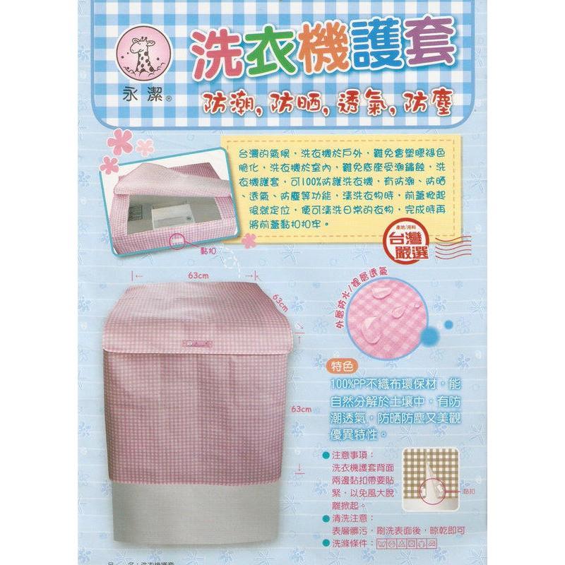 商品有很重的油墨味,通風可改善,在意味道的買家請勿下標,謝謝。 商品有很重的油墨味,通風可改善,在意味道的買家請勿下標,謝謝。 商品有很重的油墨味,通風可改善,在意味道的買家請勿下標,謝謝。 永潔洗衣機護套 商品描述 材質:100%不織布 尺寸:約63*63*63公分±5% 產地:中國 此款洗衣機防塵套有比較小, (一般款尺寸長和寬是65*65公分,此款是做63*63公分) 長度上也比較短,買家要先確定尺寸,可使用再購買。 顏色 : 藍色,粉色,棕色