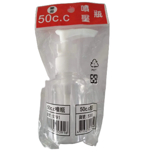 品名:50cc空壓瓶 材質:塑膠 產地:中國 一般家庭用 注意:本品不可裝填強酸 強鹼 油漬溶劑等腐蝕性液體