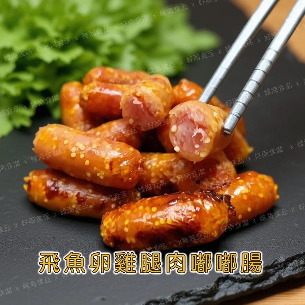 🌟「飛魚卵雞腿肉嘟嘟腸」的腸衣是使用「豬背脂」製作,若不能食用豬肉者,避免購買。
