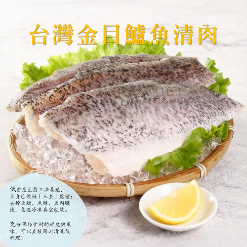 🔔貼心提醒:金目鱸魚清肉片去鱗後將兩側的魚肉完整取下,已無魚的中骨,但仍可能有暗刺(食用時仍需小心),相對於其他部位刺最少。