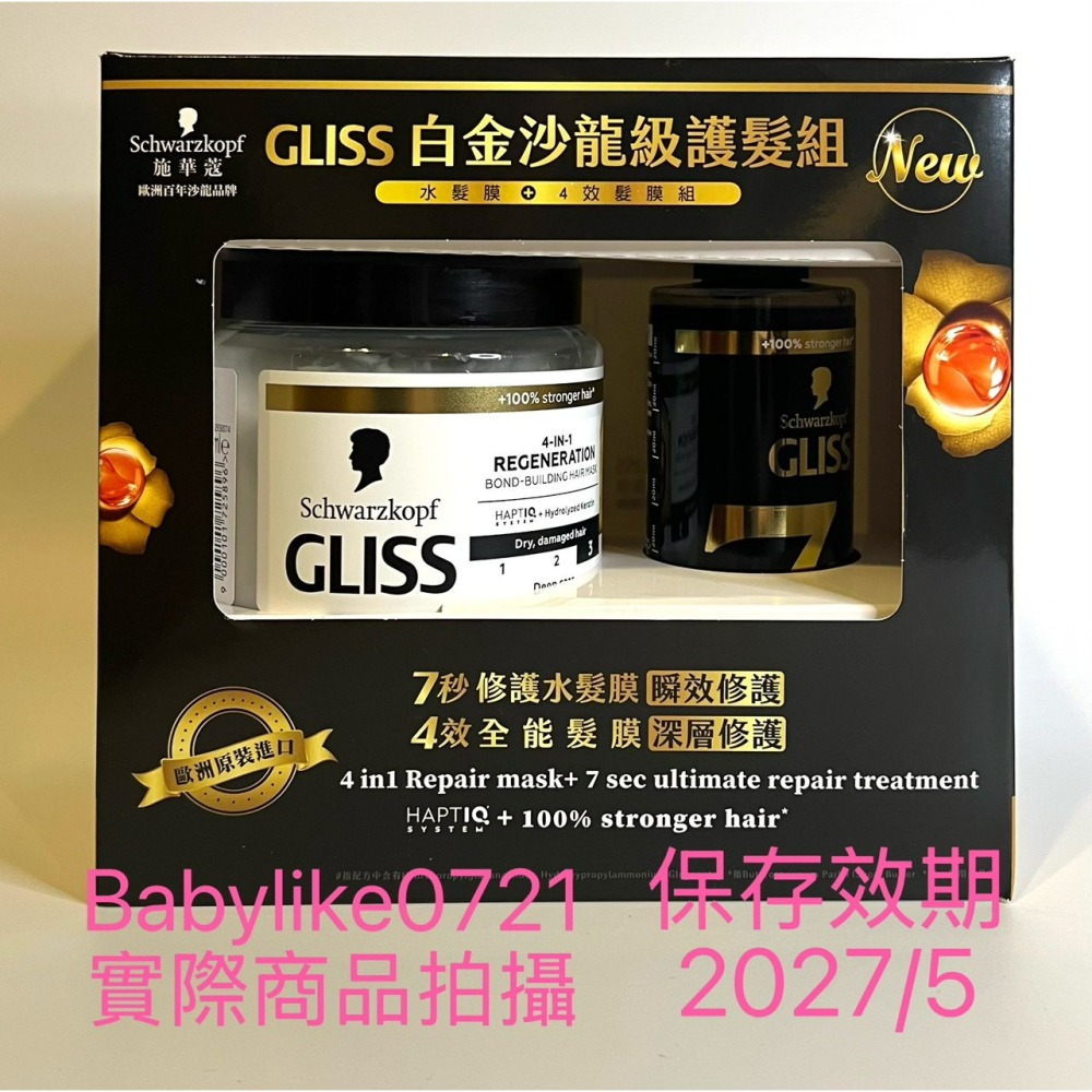 好市多=施華蔻GLISS白金沙龍級護髮組4效全能髮膜400毫升+7秒角蛋白瞬護水髮膜200毫升=現貨#146674