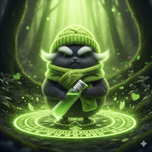 最特別的地方,是他那對白白、凸起的短眉毛 —— 那是他的感測器。當你感到迷茫、疲憊或運氣不順時,這對小眉毛會微微抖動,默默地為你撥開迷霧,過濾掉那些不屬於你的雜質。