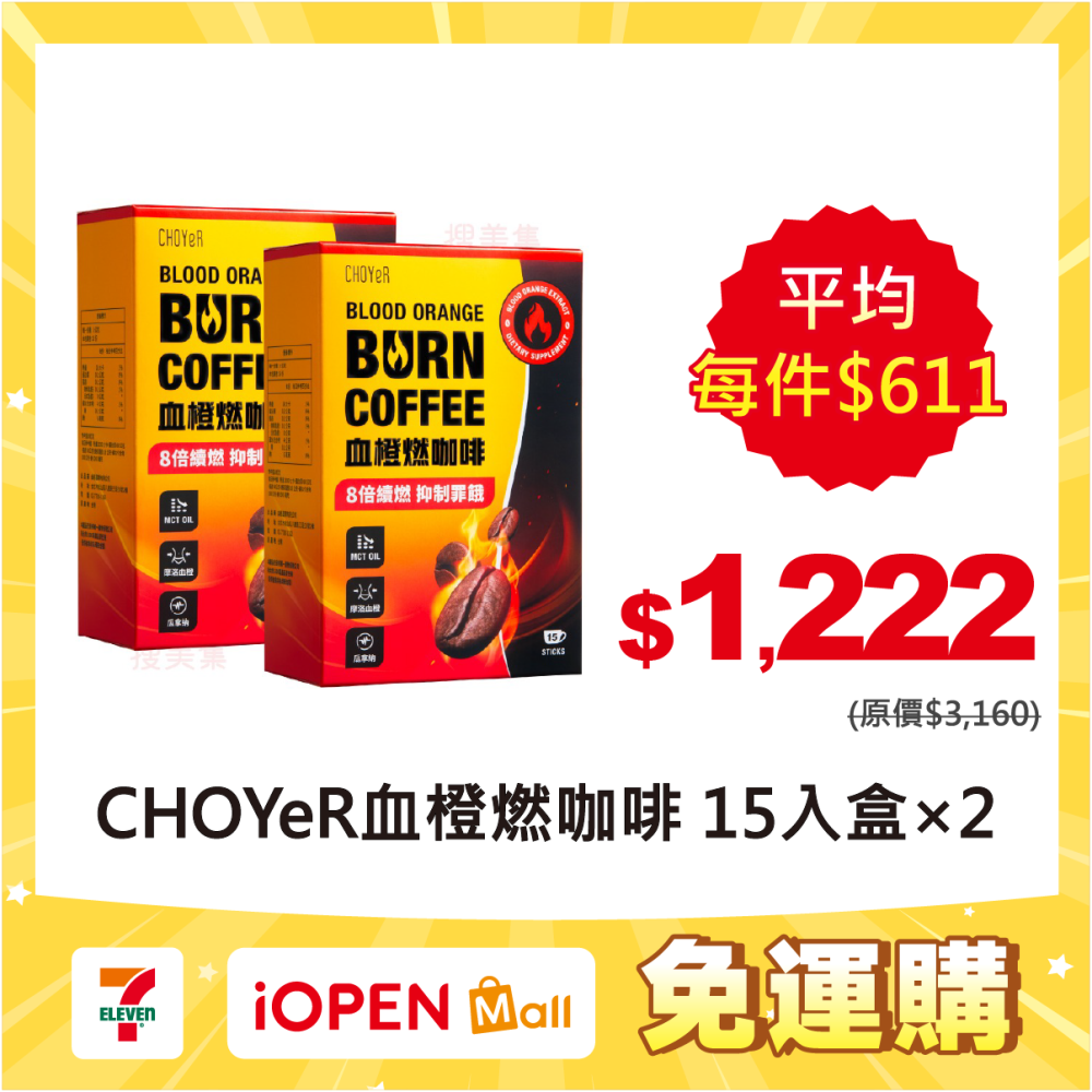 【7-ELEVEN 門市團購】CHOYeR 曲易 血橙燃咖啡(15入/盒)x2 (李燕推薦)