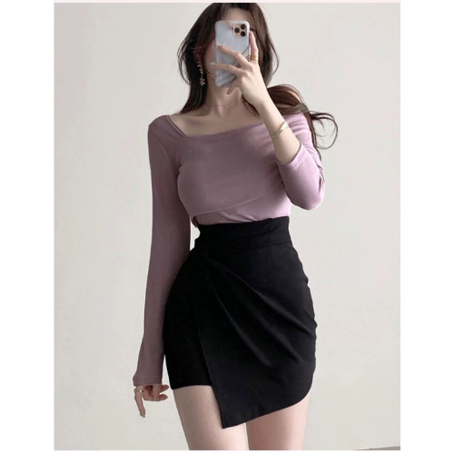 顯瘦高腰不規則包臀裙(黑M)