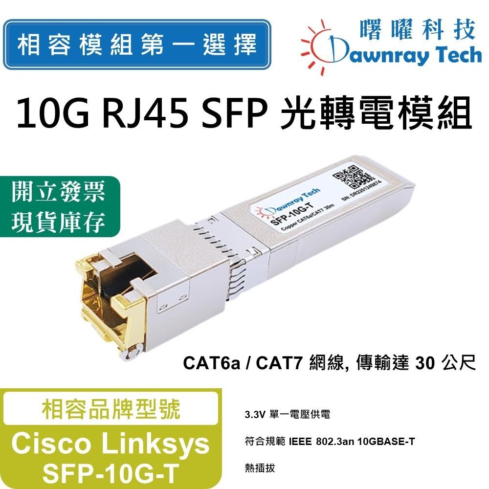 Cisco Linksys SFP-10G-T 相容 SFP+ 銅纜模組 10GBASE-T 10.3Gbps CAT6a/CAT7 雙絞線 RJ45 30m