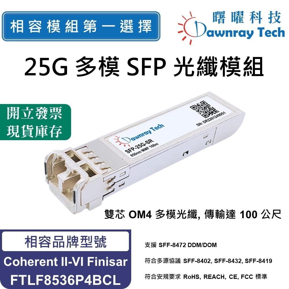 Coherent II-VI Finisar FTLF8536P4BCL 相容 SFP28 光纖模組 25GBASE-SR 25.8Gbps 850nm 多模 雙芯 LC 100m DOM