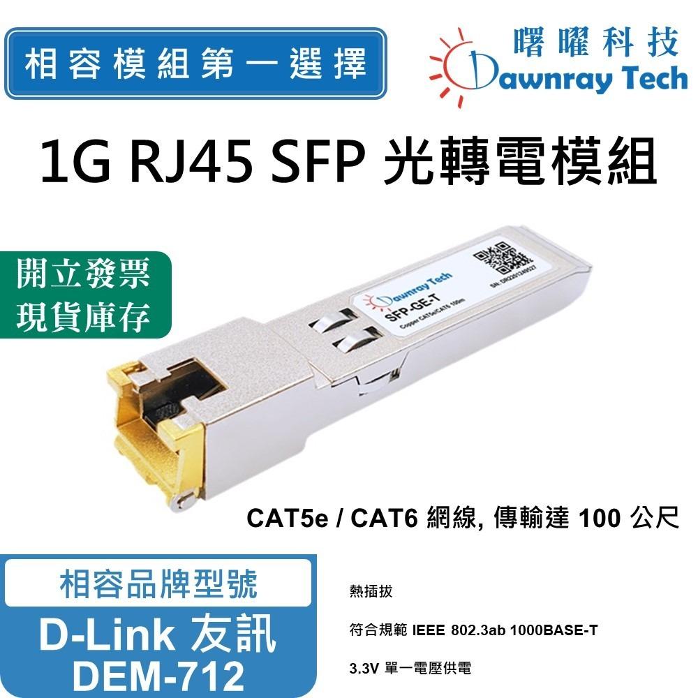 D-Link 友訊 DEM-712 相容 SFP 銅纜模組 1000BASE-T 1000Mbps CAT6/CAT6a 雙絞線 RJ45 100m