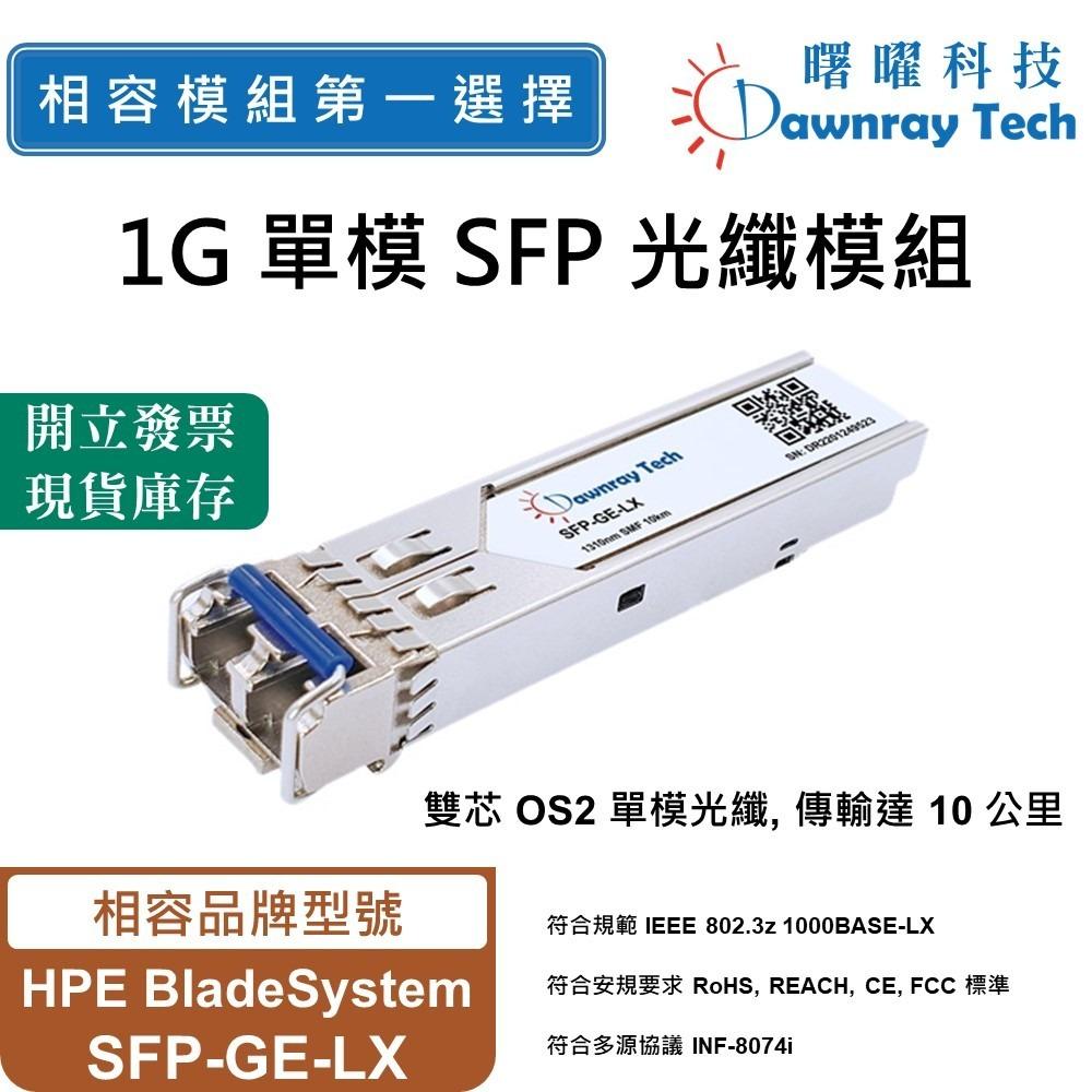 HPE BladeSystem SFP-GE-LX 相容 SFP 光纖模組 1000BASE-LX 1000Mbps 1310nm 單模 雙芯 LC 10km DOM