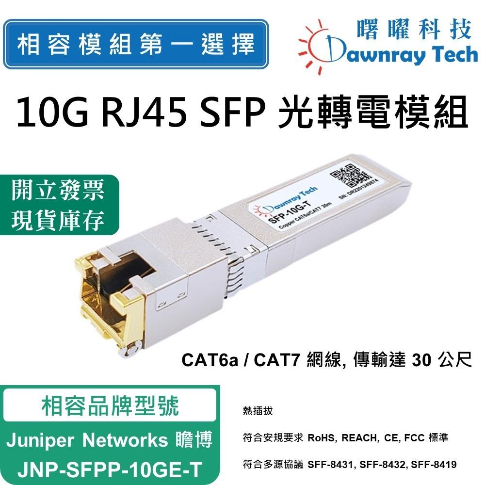 Juniper Networks 瞻博 JNP-SFPP-10GE-T 相容 SFP+ 銅纜模組 10GBASE-T 10.3Gbps CAT6a/CAT7 雙絞線 RJ45 30m
