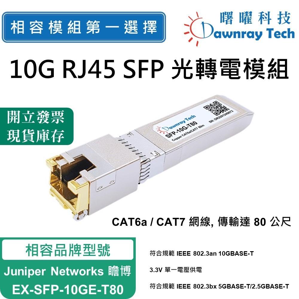 Juniper Networks 瞻博 EX-SFP-10GE-T80 相容 SFP+ 銅纜模組 10GBASE-T 10.3Gbps CAT6a/CAT7 雙絞線 RJ45 80m