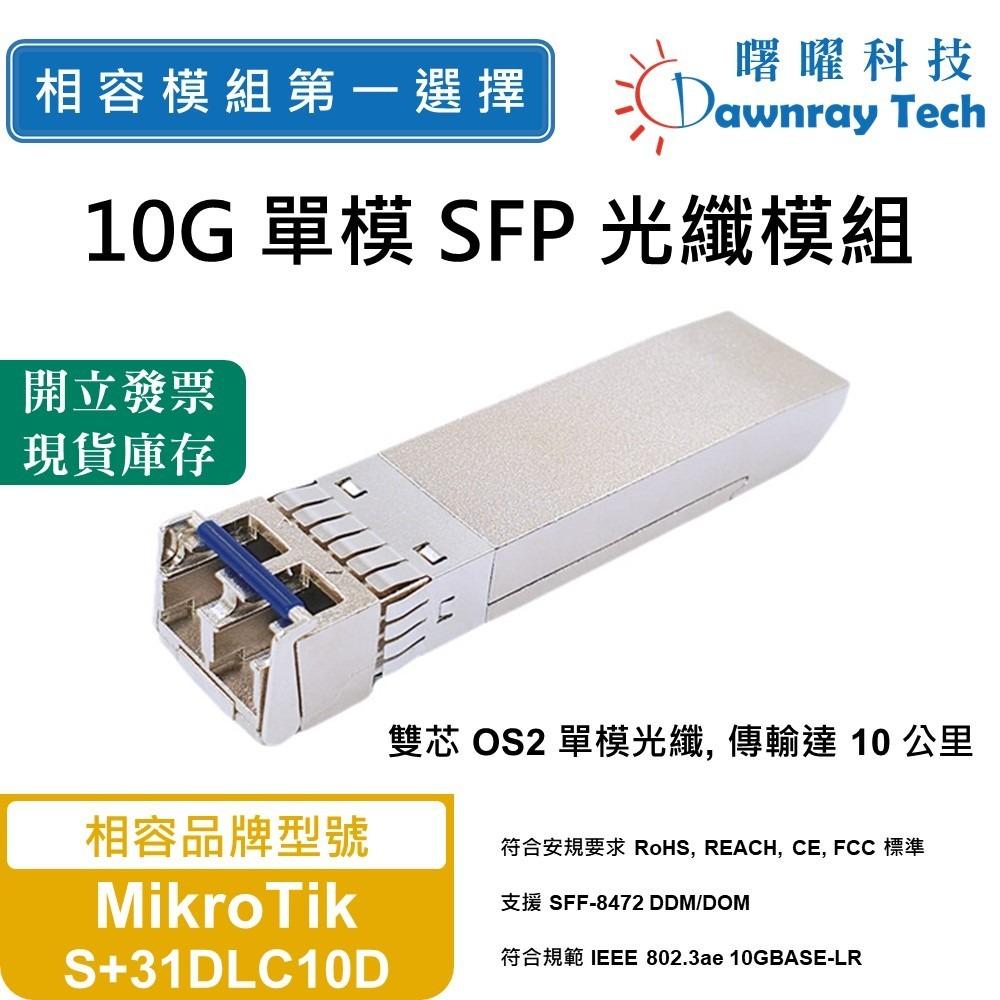 MikroTik S+31DLC10D 相容 SFP+ 光纖模組 10GBASE-LR 10.3Gbps 1310nm 單模 雙芯 LC 10km DOM