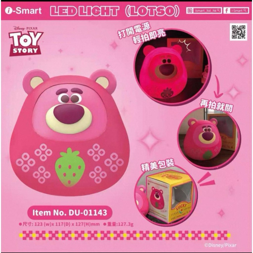 已絕版)迪士尼 玩具總動員 草莓熊 達摩系列 LED 拍拍燈 小夜燈