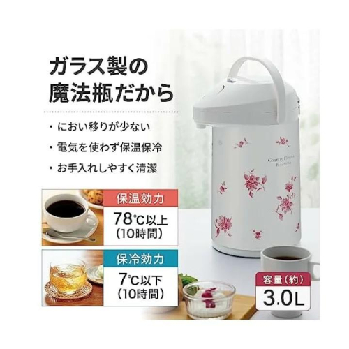 日本製 Peacock 孔雀 360℃ 玻璃內膽 雙層真空 不鏽鋼氣壓式保溫壺 3L ◎尺寸:寬19.6x深24.8x高37.2cm ◎容量:3公升 ◎重量:1.86kg ◎材質:內瓶-硼矽酸鹽玻璃、瓶身-鋼(印刷鋼板)、瓶蓋-聚丙烯、瓶蓋-聚丙烯、水泵管-聚丙烯 ◎保溫效果:78℃以上可保溫10小時、7℃以下可保冷10小時 ※日本製 ○請注意以下事項: ○請勿使用洗碗機或烘碗機 ○保溫效率為在室溫20℃±2℃的環境下,將產品注滿熱水至壺嘴底部,水溫達到95℃±1℃後,垂直放置10小時後測得的熱溫度。 ○冷卻效率是在室溫20°C±2°C的環境下,將產品注滿冷水至出水口底部,在水溫為4°C±1°C的狀態下直立放置10小時後測得的水溫。 出貨時間:收到訂單後,需要1-5工作天,將會盡快安排出貨 https://s-cf-tw.shopeesz.com/file/tw-11134208-7ra0k-mde1au1hwq2n64 https://s-cf-tw.shopeesz.com/file/tw-11134208-7ra0l-mde1au1hy4n3b6 https://s-cf-tw.shopeesz.com/file/tw-11134208-7ra0q-mde1au1hzj7j7c https://s-cf-tw.shopeesz.com/file/tw-11134208-7ra0s-mde1au1i0xrzf7