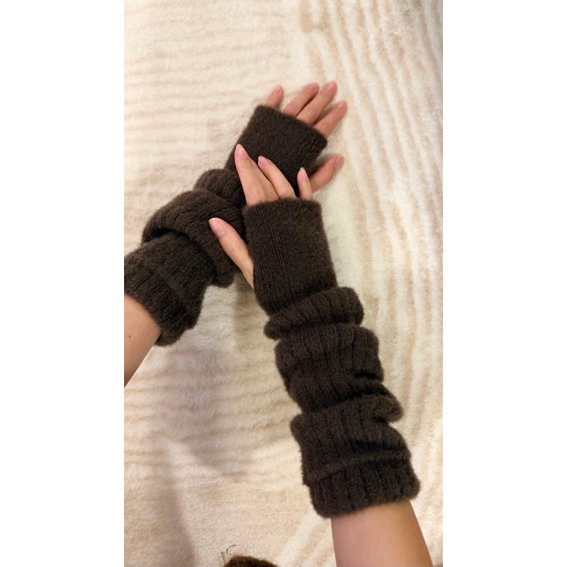 冬季保暖毛毛袖套 深咖啡針織款|氣質百搭手袖套 手臂套