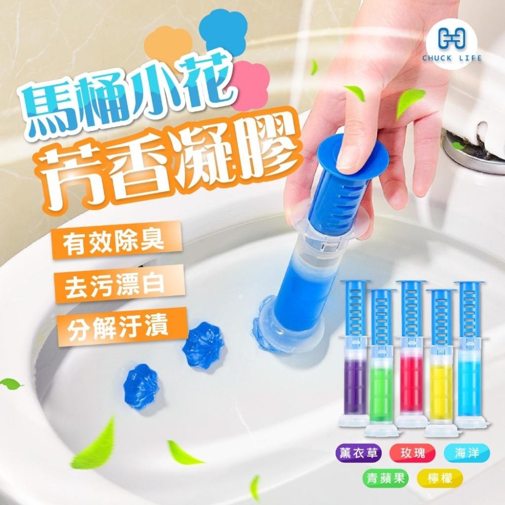 輕輕的把凝膠壓在馬桶的壁內 看你想壓幾朵就壓幾朵,不費時🥳
