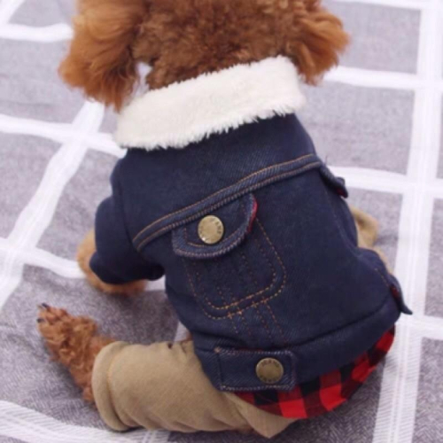 🥼牛仔四腳衣-一體成形(羊羔絨牛仔外套+格子襯衫+卡其褲)