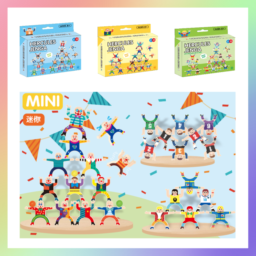輪流將人偶堆疊起來,挑戰疊高高保持平衡,直到積木塔倒塌