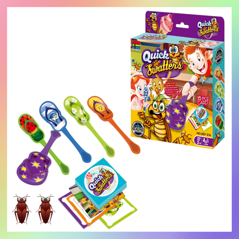 使用拖鞋形狀的拍子,搶先拍到特定圖案的卡片。