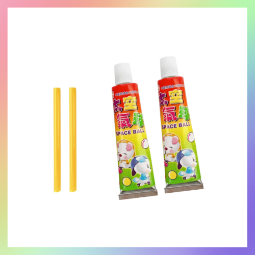 將膠體擠在吹管末端,然後吹氣形成氣球。