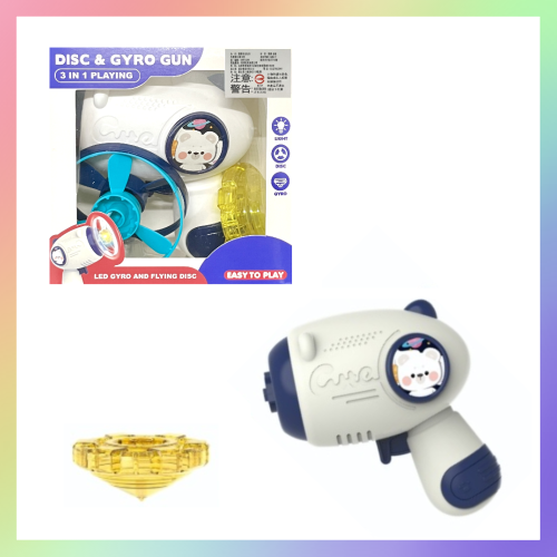 可朝上發射飛碟或朝下發射陀螺的玩具槍~
