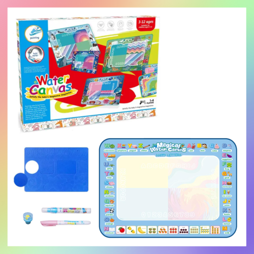 毯面帶有彩色區域,畫筆沾水後能在毯子上畫出彩色圖案,較一般畫筆能保持環境整潔