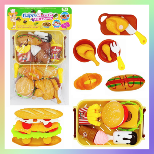 商品內容 : 漢堡炸雞切切樂x1 (籃子x1、食物們)