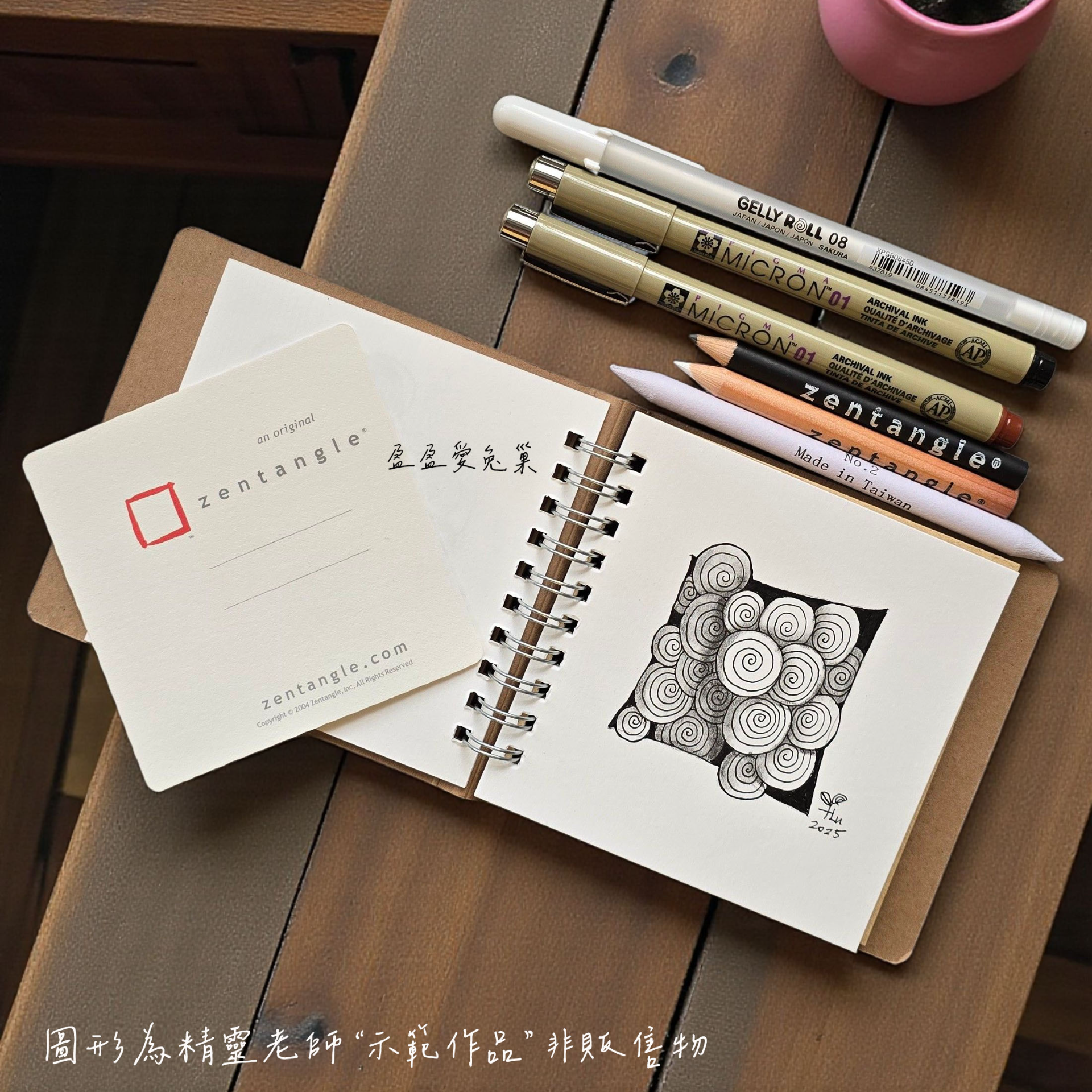 - 本賣場販售 [禪繞畫三色隨行本 (白色 黑色 茶色) ] , 及美國 Zentangle® 官方材料。