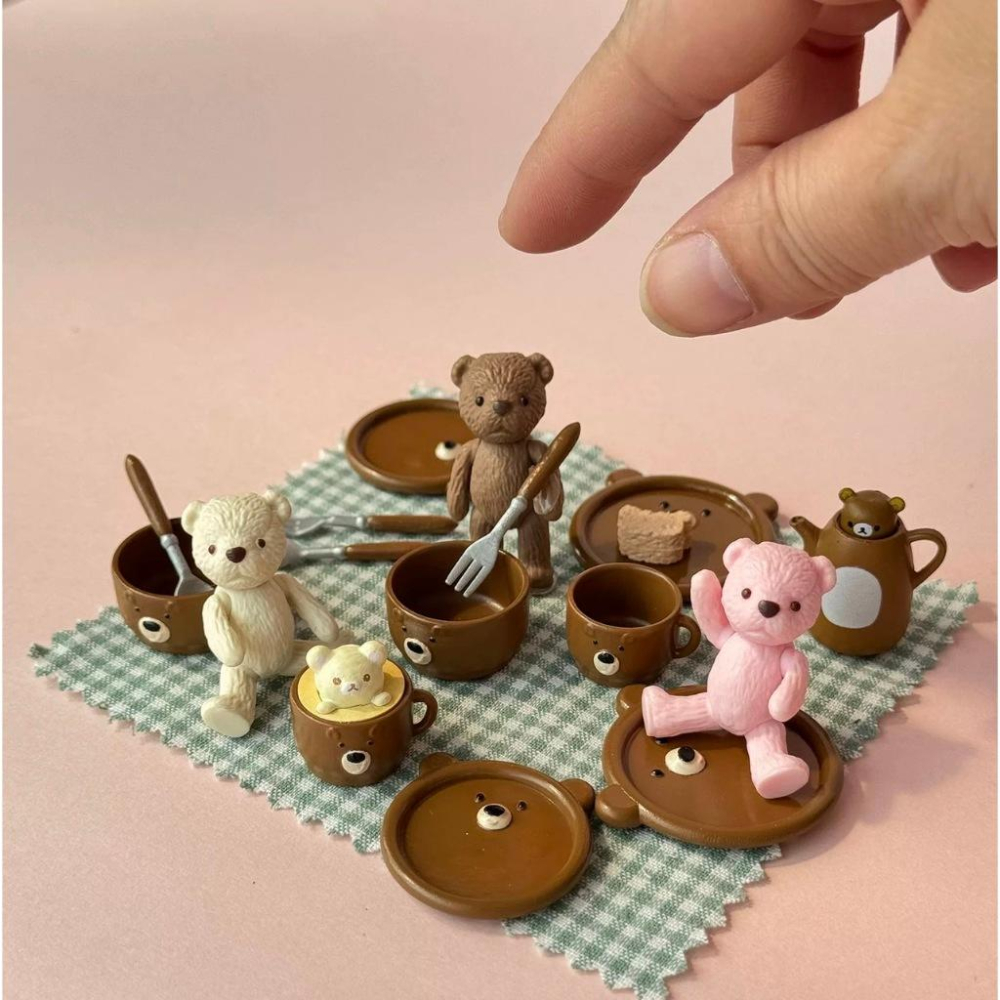絲果兔兔醬 可動 泰迪熊 粉色 咖啡色 白色 微縮 盒玩 食玩 擺飾 大陸手作
