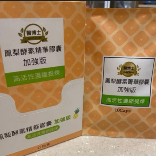 品名:鳳梨酵素精華膠囊 加強版成分:鳳梨酵素400mg(添加量400mg•約60萬CDU)、硬脂酸鎂