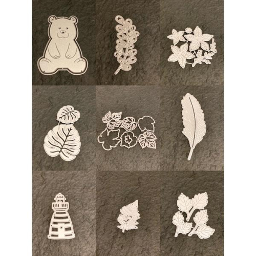 如果需要我用紙張演示 請聊聊告訴我 非常歡迎喔 別客氣 尺寸如下 cm 1.燈塔3739 (7.7*4.3) 2.小葉子2024 (7.4*9) 3.胖熊0243 (8.3*8.5) 4.雙樹1273 (6.2*5.7) 5.龜背葉0242 (9.3*6.2) 6.花邊磁磚背0879 (9*9) 7.羽毛0406 (3.8*11.5) 8.標籤框3754a3755a (17*11.3) 9.五片葉子2213a (11.8*11.5) 10.兩朵花0391 (8*5.2) 11.楓葉4153 4156 (12.5*16.5) 12.CHRISTMAS 06233 (2.5*16.3) 13.聖誕樹 0618 (6.4*12.7) 14.PEACE 0821 (2.55*8.3) 15.樹葉 0781 (4.4*7) 16.花朵 0776 (7.4*8.4) 17.楓葉 0785 (5.2*6) 18.Q版葉子 0877 (3.2*9.6) 19.雪花 0866 (7.8*7.8) 20.甜甜圈 3932 (整片大小9.2*8.3) 21.蠟燭 3990 (7.7*4.3) 22.貓科動物 SU278 (整片大小13.2*11.3) 23.Q版小貓咪 1233a 1234a (整片大小11.4*12.8)
