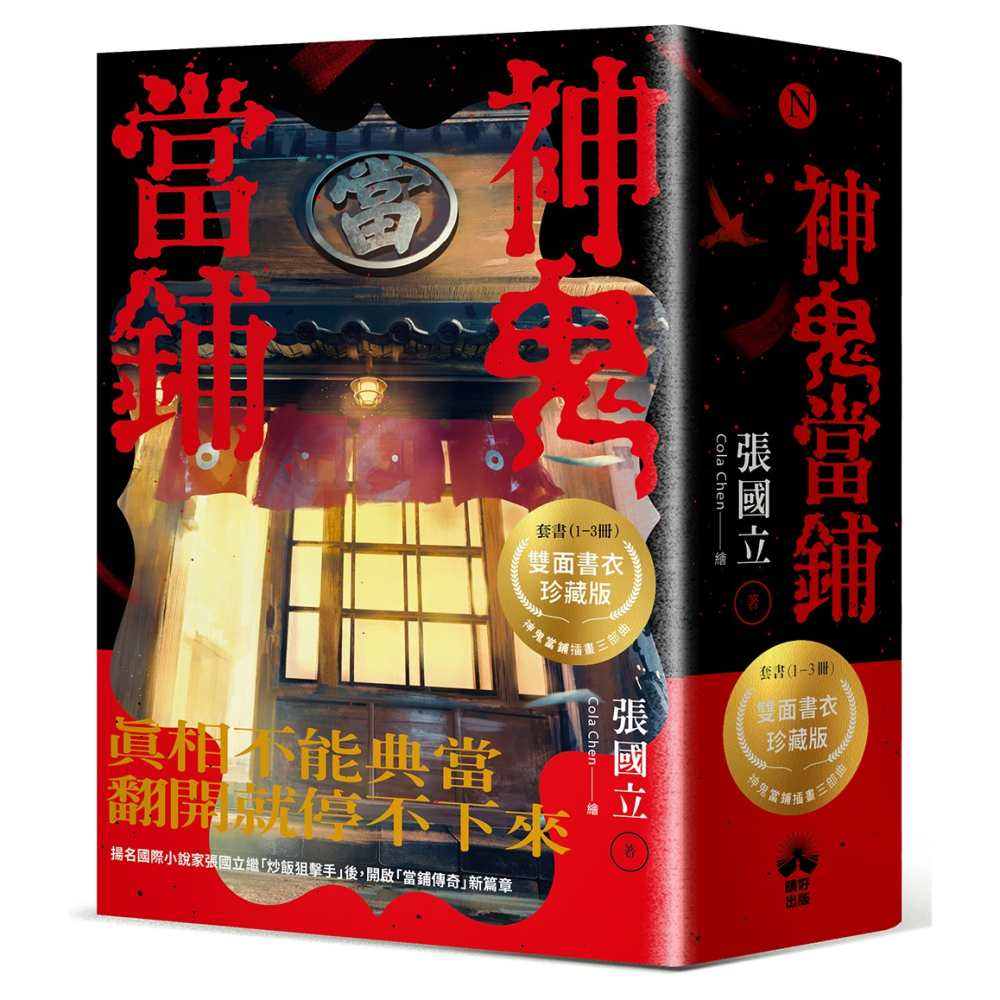 本系列封面插畫特別邀請到知名的插畫COLA Chen繪製,以當鋪為主體結合深夜、黃昏、清晨三個時間點,呈現出當鋪「營業中」、「即將營業」、「以打烊」,「神鬼當鋪三部曲」套書插畫珍藏版給喜歡這系列書的你。