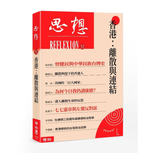 本期是《思想》第52期,專輯是:香港:離散與連結,主題是呈現這幾年離散港人複雜而深層的感受。專輯共收錄五篇文章,分別探討港人離散生命經驗的多重層面、個體如何面對流離與重塑、離散者與留港者之間的情感連結與張力,以及在台灣、英國和美國等地,離散者如何參與當地社會,並重新思索香港人的身分認同。