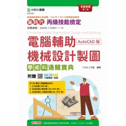 書適》丙級電腦輔助機械設計製圖學術科通關寶典(AutoCAD版)-新時代(第七版) /台科大