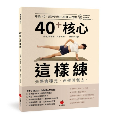 《40+ 核心這樣練》一次破解 40+ 最常犯的 7 大運動迷思,搭配獨家「3211 訓練流程」,每天只要 10 分鐘,從放鬆、伸展、呼吸到核心啟動,安全找回穩定核心力。