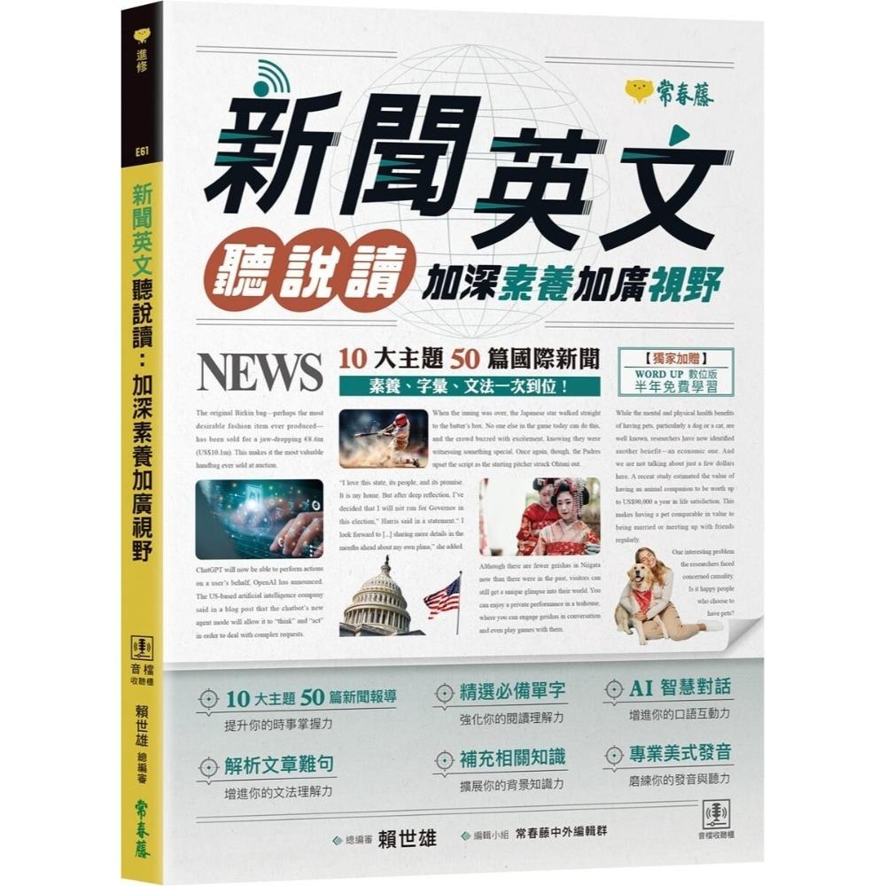 本書由賴世雄老師領軍編撰,不僅提供專業的新聞解析,更結合強大的數位工具,讓閱讀新聞不再是苦差事,而是聽、說、讀的全方位實戰。