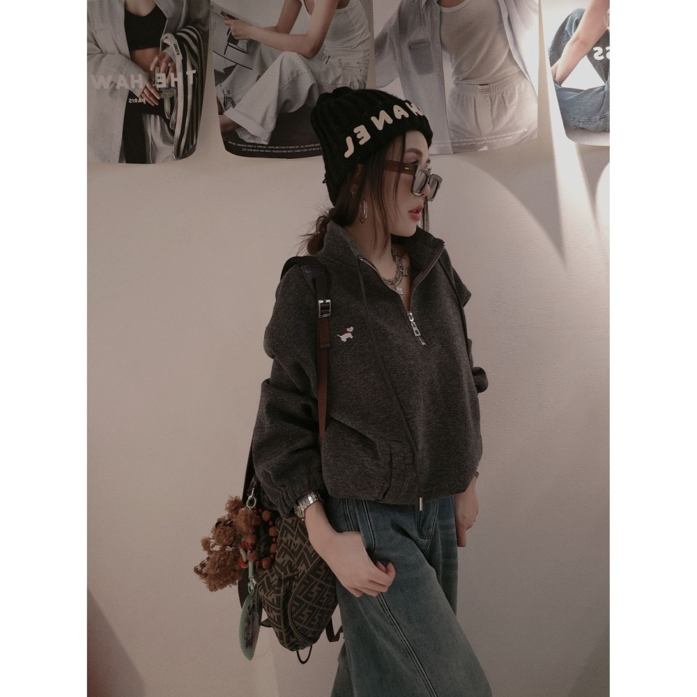 可愛小狗狗半拉鏈磨毛上衣
