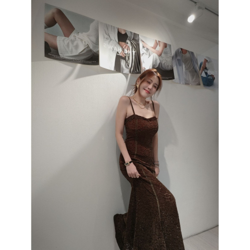 質感絨花蕾絲魚尾洋