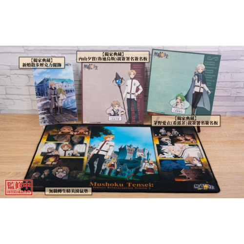 見面會特別搭配了限定周邊組合【聲優見面會特典組】,組合內容有【無職轉生精美滑鼠墊】、獨家典藏的【新婚散步壓克力擺飾】,以及將由兩位聲優現場親自署名的【獨家典藏紀念親筆簽名板(魯迪烏斯及希露菲各一組)】。凡購買此聲優見面會特典組兌換票券,即可獲得「《無職轉生~到了異世界就拿出真本事~》聲優見面會」參加資格。