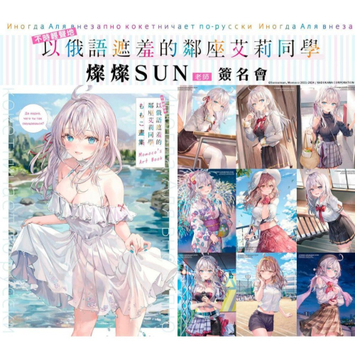 系列作累計發行量突破 5 百萬冊,態度冷淡的才貌雙全美少女艾莉常用俄語自言自語,沒想到鄰桌男主角其實聽得懂她那些撒嬌真心話的異國風校園戀愛喜劇《不時輕聲地以俄語遮羞的鄰座艾莉同學》,將於 2024 高雄國際動漫節推出作品首本畫集《不時輕聲地以俄語遮羞的鄰座艾莉同學 ももこ畫集》。