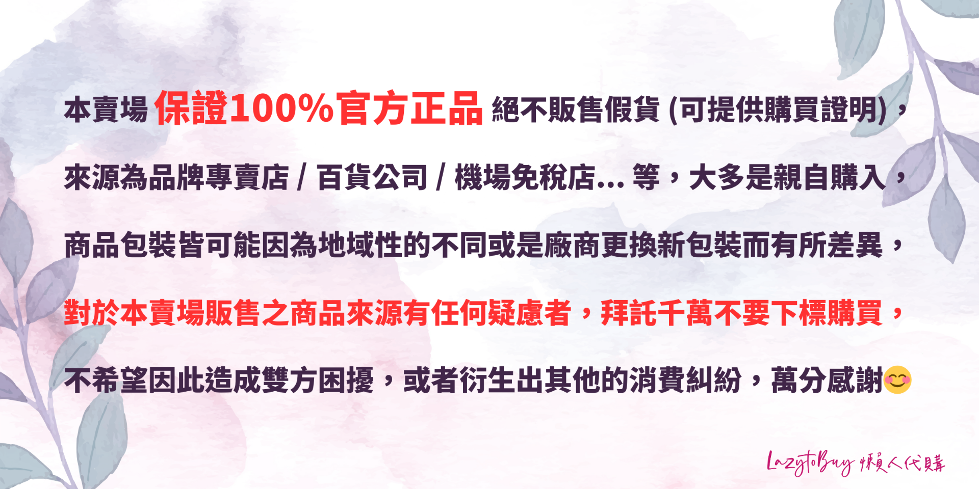 <div style="color:rgb(0,0,0);font-family:'微軟正黑體';font-size:15px;letter-spacing:0.15px;"><span style="letter-spacing:0.15px;font-size:1rem;">📢 </span><span style="letter-spacing:0.15px;font-size:1rem;background-color:rgb(255,255,0);"><span style="font-weight:bolder;">賣場於各平台的資訊</span></span></div><div style="color:rgb(0,0,0);font-family:'微軟正黑體';font-size:15px;letter-spacing:0.15px;"><a class="D_nu" href="https://bio.site/lazytobuy" style="font-family:'-apple-system', BlinkMacSystemFont, 'Segoe UI', Roboto, 'Droid Sans', 'Helvetica Neue', sans-serif;font-size:16px;background-size:initial;height:initial;letter-spacing:normal;max-height:initial;max-width:initial;min-height:initial;min-width:initial;width:initial;"><span class="D_ml D_mm D_mr D_mq D_mt D_mw D_my D_oG D_bUk D_mh" style="line-height:24px;color:rgb(0,143,121);">https://bio.site/lazytobuy</span></a></div><div style="color:rgb(0,0,0);font-family:'微軟正黑體';font-size:15px;letter-spacing:0.15px;"><span style="font-size:1rem;letter-spacing:0.15px;"><br /></span></div><div style="color:rgb(0,0,0);font-family:'微軟正黑體';font-size:15px;letter-spacing:0.15px;"><span style="font-size:1rem;letter-spacing:0.15px;">📢 </span><span style="font-size:1rem;letter-spacing:0.15px;background-color:rgb(255,255,0);"><span style="font-weight:bolder;">賣場客服</span></span></div><div style="color:rgb(0,0,0);font-family:'微軟正黑體';font-size:15px;letter-spacing:0.15px;"><br /></div><div><div><div style="color:rgb(0,0,0);font-family:'微軟正黑體';font-size:15px;letter-spacing:0.15px;"><span style="font-size:1rem;letter-spacing:0.01rem;">🟩 </span><span style="letter-spacing:0.15px;font-size:1rem;">LINE:@999hfmwg</span><br /></div><div style="color:rgb(0,0,0);font-family:'微軟正黑體';font-size:15px;letter-spacing:0.15px;">🟧 蝦皮:LazytoBuy懶人代購</div><div style="color:rgb(0,0,0);font-family:'微軟正黑體';font-size:15px;letter-spacing:0.15px;">🟥 旋轉拍賣:lazytobuy</div><div style="color:rgb(0,0,0);font-family:'微軟正黑體';font-size:15px;letter-spacing:0.15px;">🟫 Instagram:lazytobuy</div><div style="color:rgb(0,0,0);font-family:'微軟正黑體';font-size:15px;letter-spacing:0.15px;"><br /></div><div style="color:rgb(0,0,0);font-family:'微軟正黑體';font-size:15px;letter-spacing:0.15px;"><br /></div><div style="color:rgb(0,0,0);font-family:'微軟正黑體';font-size:15px;letter-spacing:0.15px;">📌 <span style="background-color:rgb(255,255,0);"><span style="font-weight:bolder;">請詳閱賣場說明</span></span> 📌</div><div style="color:rgb(0,0,0);font-family:'微軟正黑體';font-size:15px;letter-spacing:0.15px;"><br /></div><div style="color:rgb(0,0,0);font-family:'微軟正黑體';font-size:15px;letter-spacing:0.15px;">🔹有禮貌是美德,希望能互相尊重😊。</div><div style="color:rgb(0,0,0);font-family:'微軟正黑體';font-size:15px;letter-spacing:0.15px;">🔸非專職網拍經營者或公司行號,沒有提供發票,如有服務不周之處敬請見諒🙏。</div><div><font color="#000000" face="微軟正黑體"><span style="font-size:15px;letter-spacing:0.15px;">🔹保證官方正品,絕不販售假貨,消費滿300元即可面交。</span></font></div><div><span style="color:rgb(0,0,0);font-family:'微軟正黑體';font-size:15px;letter-spacing:0.15px;">🔸</span><font color="#000000" face="微軟正黑體"><span style="font-size:15px;letter-spacing:0.15px;">本賣場非製造商及通路商只是轉賣,高標請繞道,以避免購買爭議。</span></font></div><div style="color:rgb(0,0,0);font-family:'微軟正黑體';font-size:15px;letter-spacing:0.15px;"><span style="letter-spacing:0.15px;">🔹</span><span style="letter-spacing:0.15px;">七天鑑賞期非試用期,期間不可拆封或試用,請務必確認有購買需求再拆封。</span></div><div style="color:rgb(0,0,0);font-family:'微軟正黑體';font-size:15px;letter-spacing:0.15px;"><span style="letter-spacing:0.15px;">🔸</span>不二價,售價隨促銷活動調動,價格以顧客結帳金額為主,無差價退款服務。</div><div style="color:rgb(0,0,0);font-family:'微軟正黑體';font-size:15px;letter-spacing:0.15px;"><span style="letter-spacing:0.15px;">🔹</span>全館商品皆為現貨,請直接下標結帳即可。</div><div style="color:rgb(0,0,0);font-family:'微軟正黑體';font-size:15px;letter-spacing:0.15px;"><span style="letter-spacing:0.15px;">🔸</span>現貨商品下單後快速出貨,但不接急單喔❌。</div><div style="color:rgb(0,0,0);font-family:'微軟正黑體';font-size:15px;letter-spacing:0.15px;"><span style="letter-spacing:0.15px;">🔹</span>免稅及代購品難免有外盒包裝擠壓等問題,完美主義者請繞道。</div><div style="color:rgb(0,0,0);font-family:'微軟正黑體';font-size:15px;letter-spacing:0.15px;"><span style="letter-spacing:0.15px;">🔸</span>貨到付款者要記得在時間內去取貨喔,惡意不取者將封鎖黑名單。</div><div style="color:rgb(0,0,0);font-family:'微軟正黑體';font-size:15px;letter-spacing:0.15px;"><span style="letter-spacing:0.15px;">🔹</span>為保障彼此權益,拆封時請全程錄影,以避免爭議造成雙方困擾。</div><div style="color:rgb(0,0,0);font-family:'微軟正黑體';font-size:15px;letter-spacing:0.15px;"><span style="letter-spacing:0.15px;">🔸</span>美妝類商品、涉及個人衛生或包裝無法復原,鑑賞期間皆不可拆封或試用,請務必確認有購買需求後再拆封。</div></div></div>