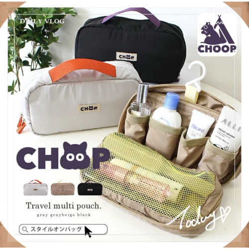 📍多個分類口袋,有放瓶子型和管型物品的開口口袋、大開的拉鍊口袋,還有一眼就能確認裡面的東西的網眼口袋,可以整齊地收納化妝工具。