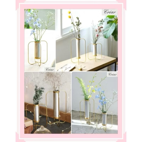📍鋁製圓筒花瓶+鐵桿邊框底座,時尚與復古色調設計風格,溫暖又有設計感。
