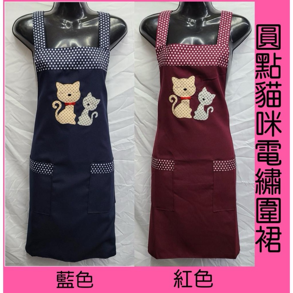 ♥️批發小姐[台灣製造] GS552圓點小貓二口袋圍裙 生意營業工作用圍裙
