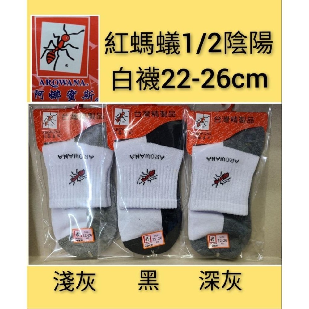 ♥️批發小姐[台灣製造]6雙210元 紅螞蟻 陰陽襪 1/2 色底白短襪 22-26cm